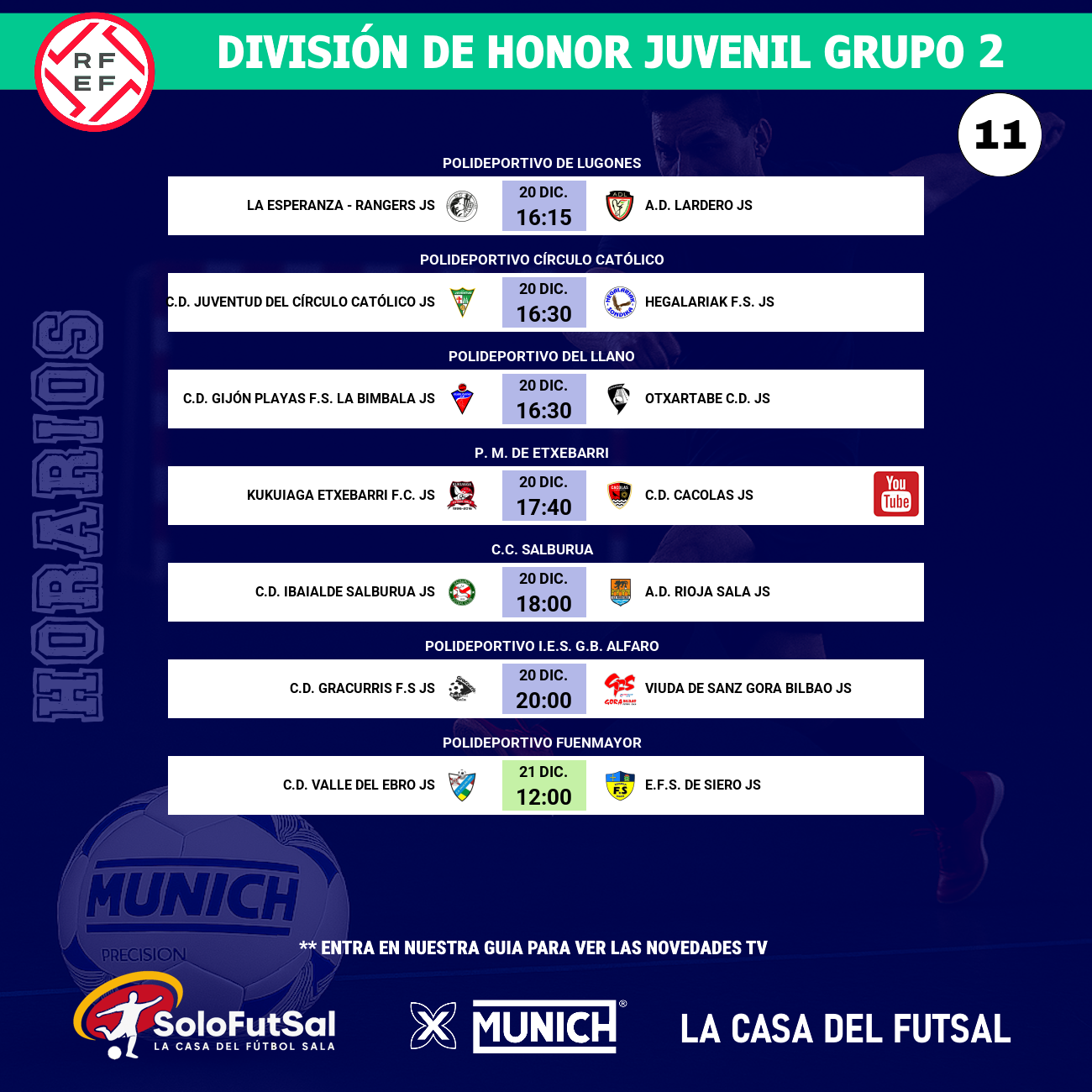 Más allá de la participación asturiana, la Jornada 11 es crucial para la cabeza de la clasificación. El C.D. Valle del Ebro defiende su liderato (25 puntos) con un margen de error mínimo. Su perseguidor inmediato, el C.D. Gracurris F.S., segundo con 24 puntos y una sola derrota, jugará el sábado a las 20:00 contra el Viuda de Sanz Gora Bilbao.