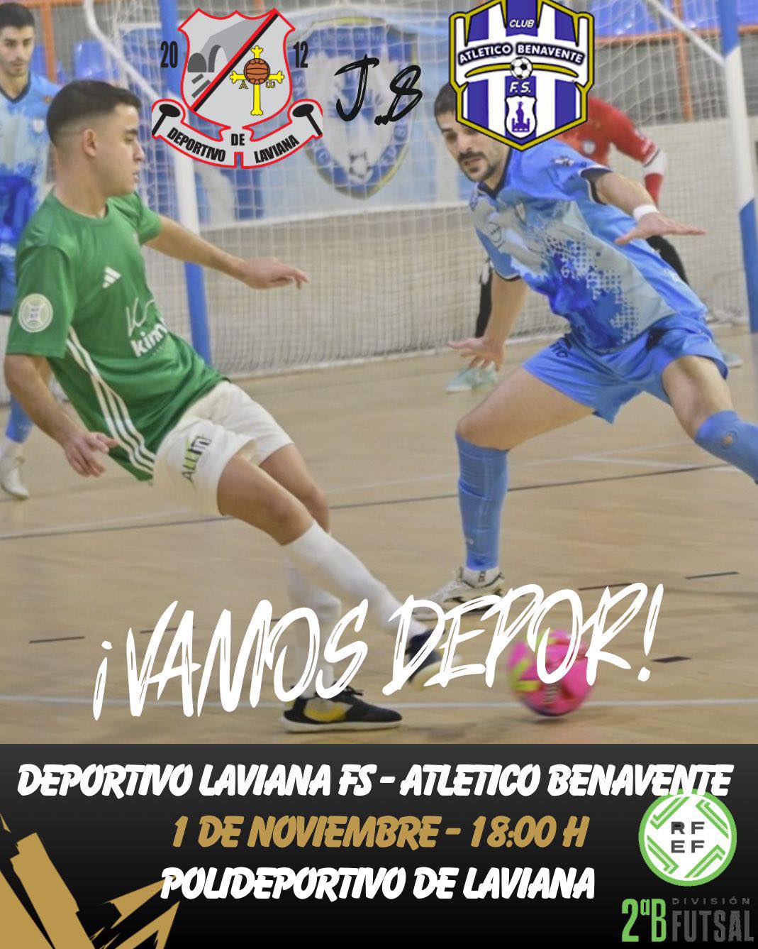 La octava jornada del campeonato en Segunda División B de Fútbol Sala enfrenta este sábado (18:00 horas) a dos equipos en dinámicas opuestas. El Deportivo Laviana, necesitado de puntos y confianza, recibe en el Polideportivo de Laviana al Caja Rural Atlético Benavente, uno de los firmes candidatos al ascenso a Segunda División.