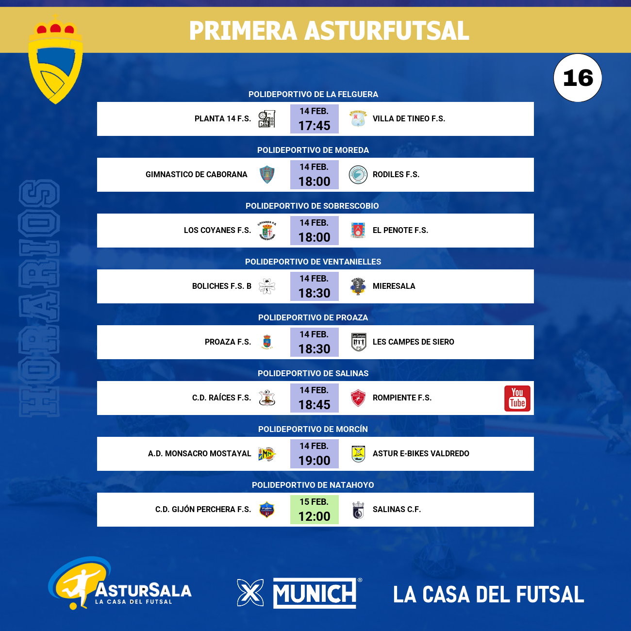 La Primera AsturFutSal sube el telón de la segunda mitad de la temporada este fin de semana con la disputa de la decimosexta jornada. Tras quince fechas de intensa competición, las cartas están sobre la mesa: los tres primeros clasificados lograrán el ansiado ascenso a Tercera División, mientras que los cinco primeros obtendrán el billete para la prestigiosa Copa Principado. En el extremo opuesto, el margen de error se agota, ya que los cuatro últimos clasificados perderán la categoría descendiendo a Segunda AsturFutSal. Con el contador de jornadas reiniciándose, cada punto se vuelve vital.