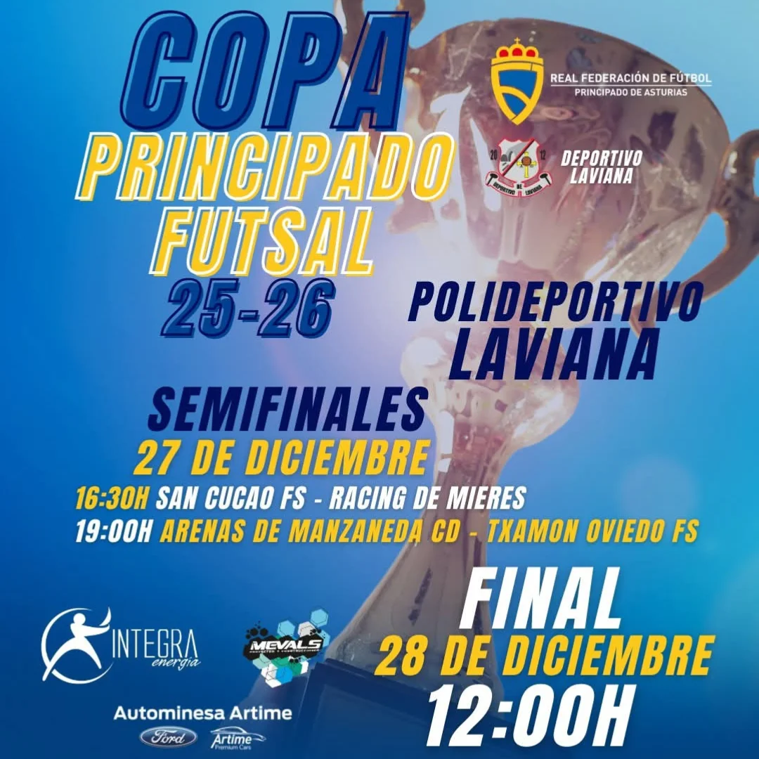 El corazón de la cuenca minera se convierte este fin de semana en el epicentro del fútbol sala regional. El Polideportivo de Pola de Laviana se viste de gala para acoger la Fase Final de la IV Edición de la Copa Principado, el torneo del K.O. que más pasiones levanta en el futbol sala asturiano. Tras meses de competición de liga en busca de la clasificación, y de eliminatorias a partido único, sorpresas y goles, solo quedan cuatro supervivientes. Cuatro equipos y un solo objetivo: levantar el trofeo el domingo 28 de diciembre y suceder en el palmarés al Avilés Sport F.S.