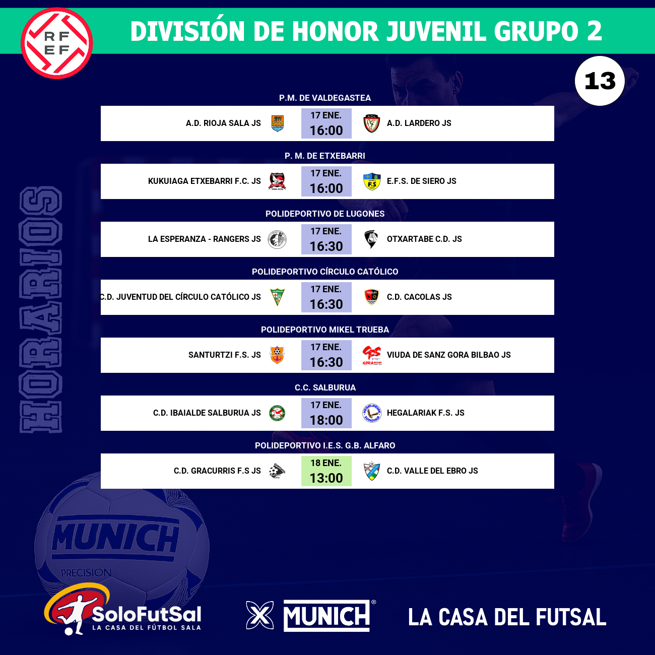 División de Honor Juvenil encara la recta final de la primera vuelta con una decimotercera jornada que promete ser determinante. Con la lucha por el billete único para la Copa de España al rojo vivo, el calendario ha deparado el enfrentamiento definitivo: el C.D. Gracurris F.S. (2º, 27 puntos) recibe al líder, el C.D. Valle del Ebro (1º, 28 puntos), este domingo a las 13:00 horas. El resultado de este choque de titanes condicionará el futuro de la competición y mantendrá en vilo a los perseguidores. En clave asturiana, el C.D. Gijón Playas disfruta de su jornada de descanso al ser un grupo impar, cediendo el protagonismo al resto de representantes del Principado que afrontan compromisos vitales.