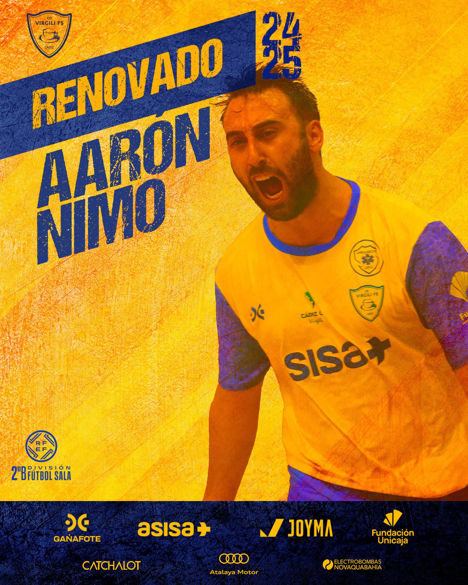 Aarón Nimo Cobo, nacido en El Puerto de Santa María el 11 de julio de 1995, regresó a España en la 2022-2023 procedente del Arcobaleno Ispica Calcio A5 italiano que milita en la Serie A2 (segunda división italiana) tras seis temporadas en el fútbol sala italiano, sumando cinco en el Futsal Regalbuto y una en el Arcobaleno Ispica. Anteriormente jugó en el CD Virgili Cádiz, proclamándose campeón de liga en 3ª División de Fútbol Sala.