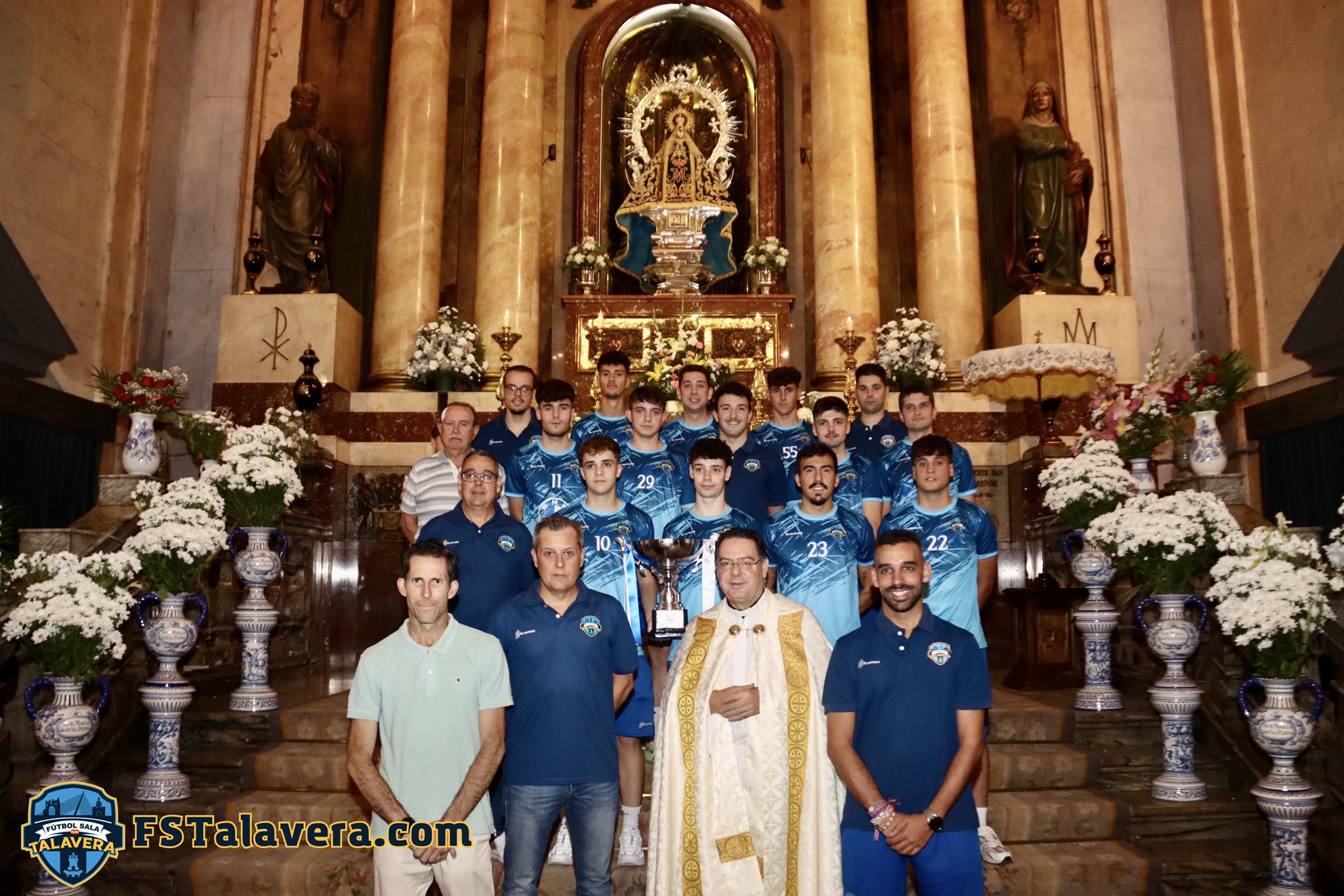 La delegación del conjunto talaverano, formada por la mayor parte de su Junta Directiva, Cuerpo Técnico y Plantilla, acompañados además por el concejal de Deportes, Jesús Antonio Núñez, serían recibido por el Rector de la Basílica, Don Felipe García Díaz Guerra, quien profirió unas bonitas palabras de ánimo para la temporada que arrancará este próximo domingo.