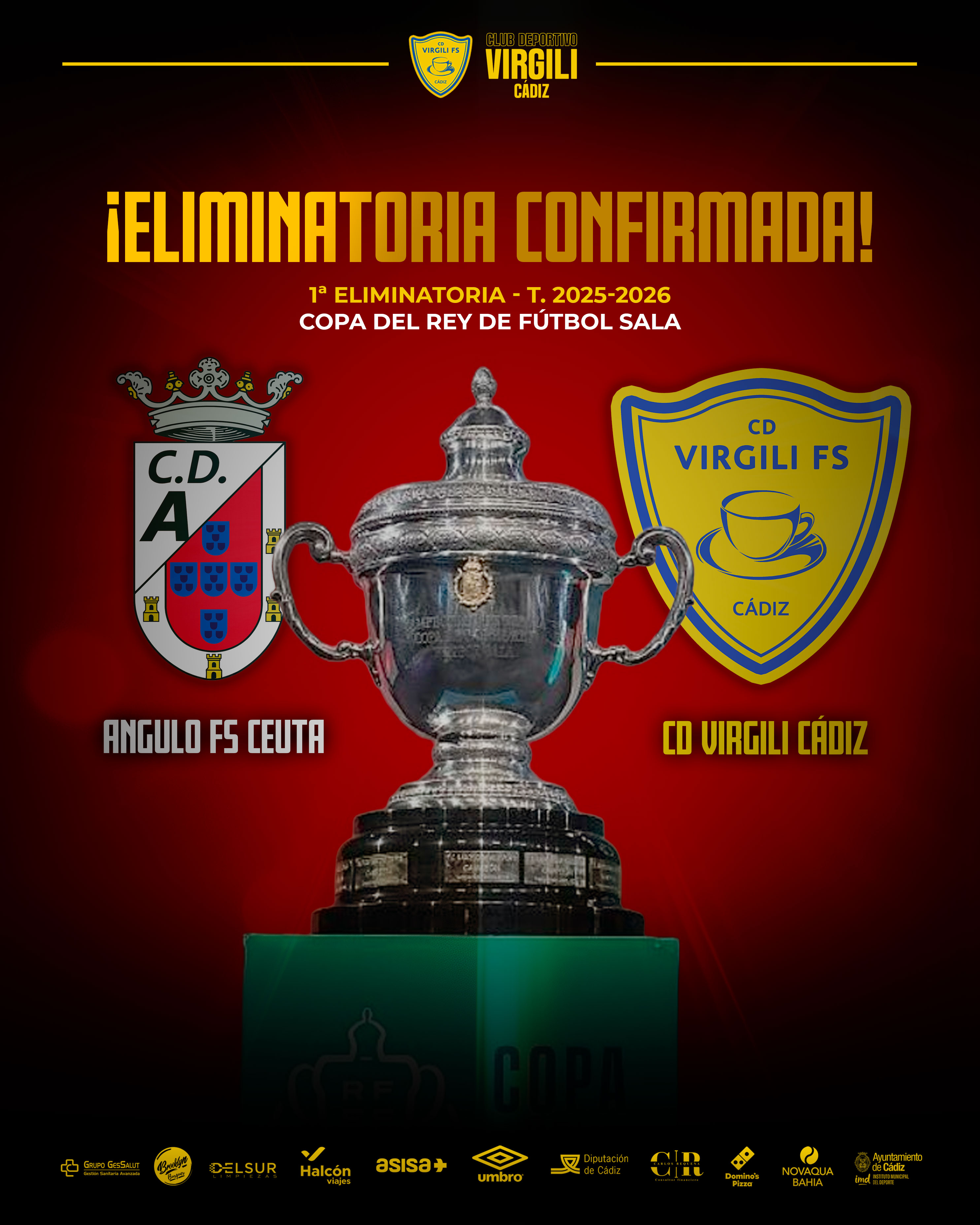 El sorteo de la primera eliminatoria de la Copa de S. M. el Rey de Fútbol Sala 2025-2026 ha deparado el enfrentamiento entre el Angulo FS de Ceuta y el CD Virgili Cádiz. El emparejamiento se ha decidido por proximidad geográfica y, al tratarse de equipos de distinta categoría, el conjunto de menor categoría, en este caso el ceutí, jugará en casa.