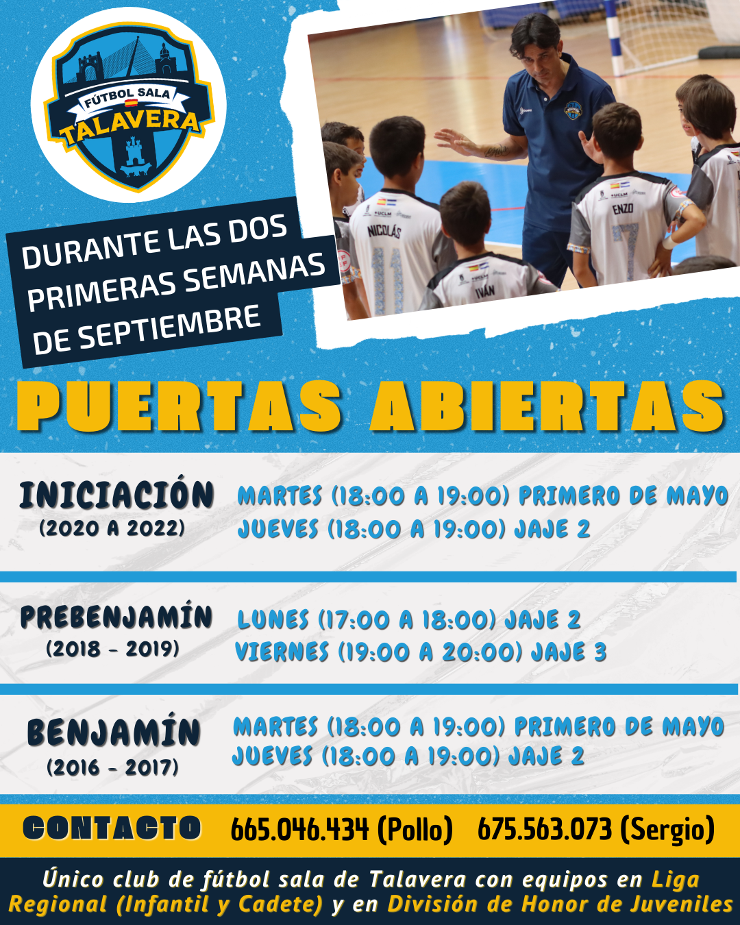 Una nueva temporada ya se vislumbra en La Academia del Fútbol Sala Talavera y desde el club se ha decido volver a retomar las sesiones de Puertas Abiertas con las que se cerraba el curso pasado y con el fin de que, con la vuelta al cole en este mes de septiembre, se incorporen nuevos jugadores y jugadoras a los distintos equipos de la entidad.